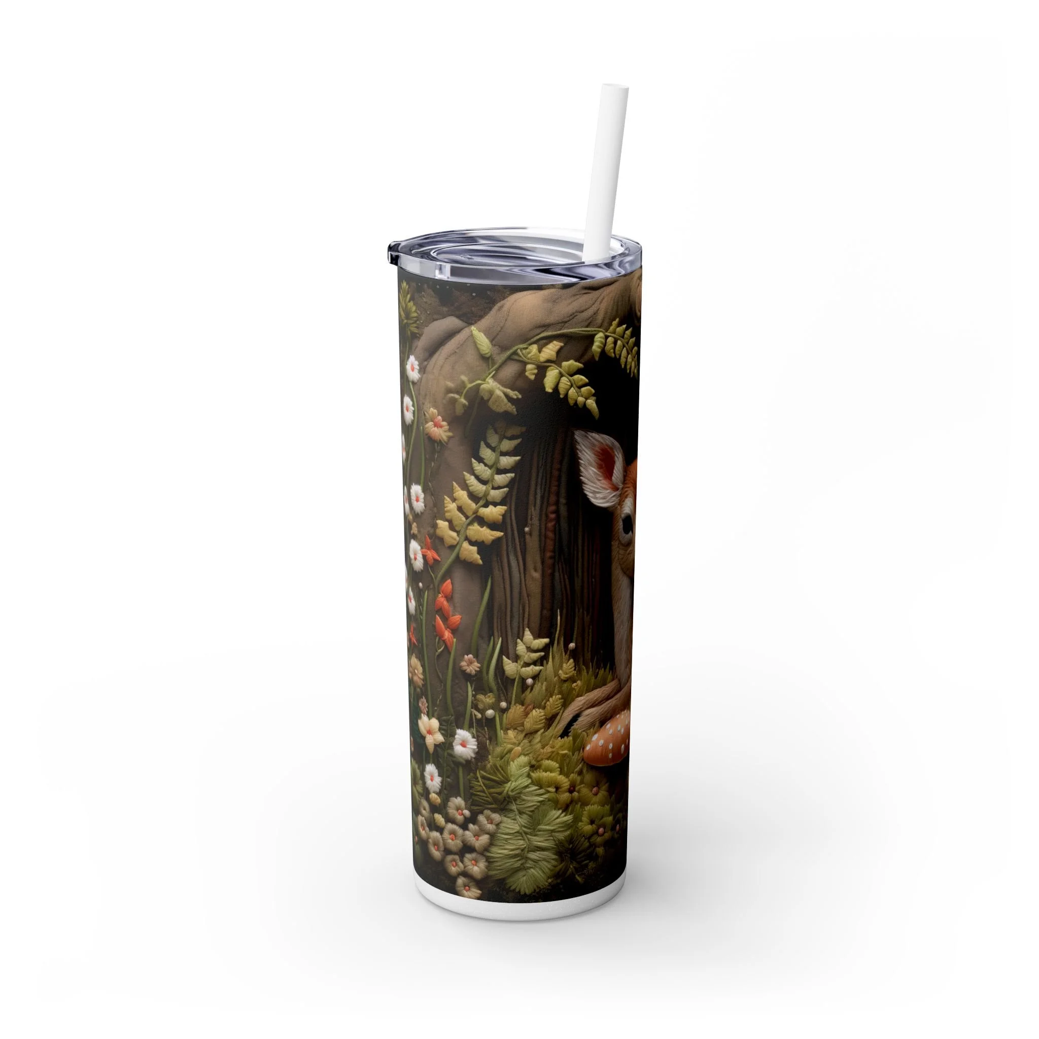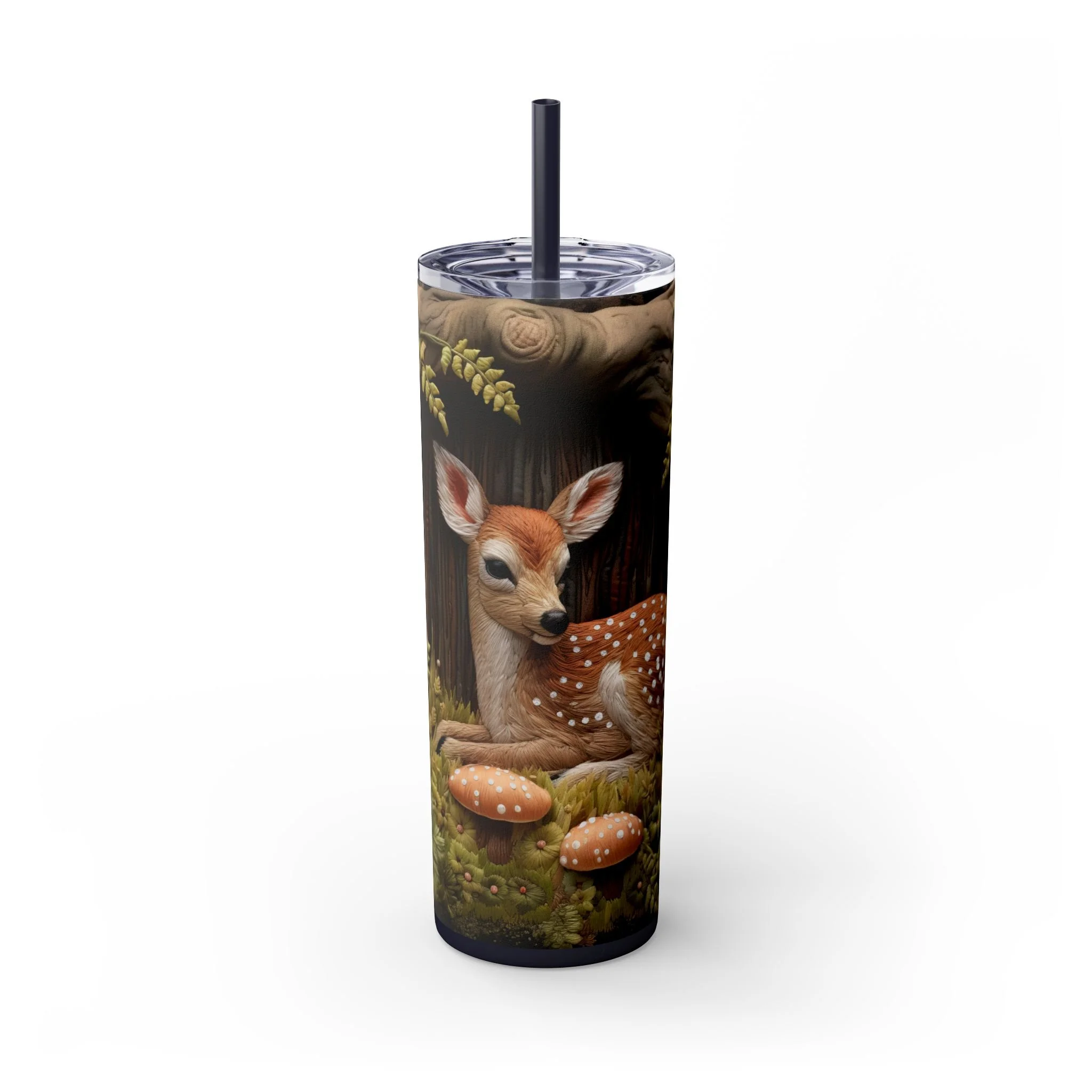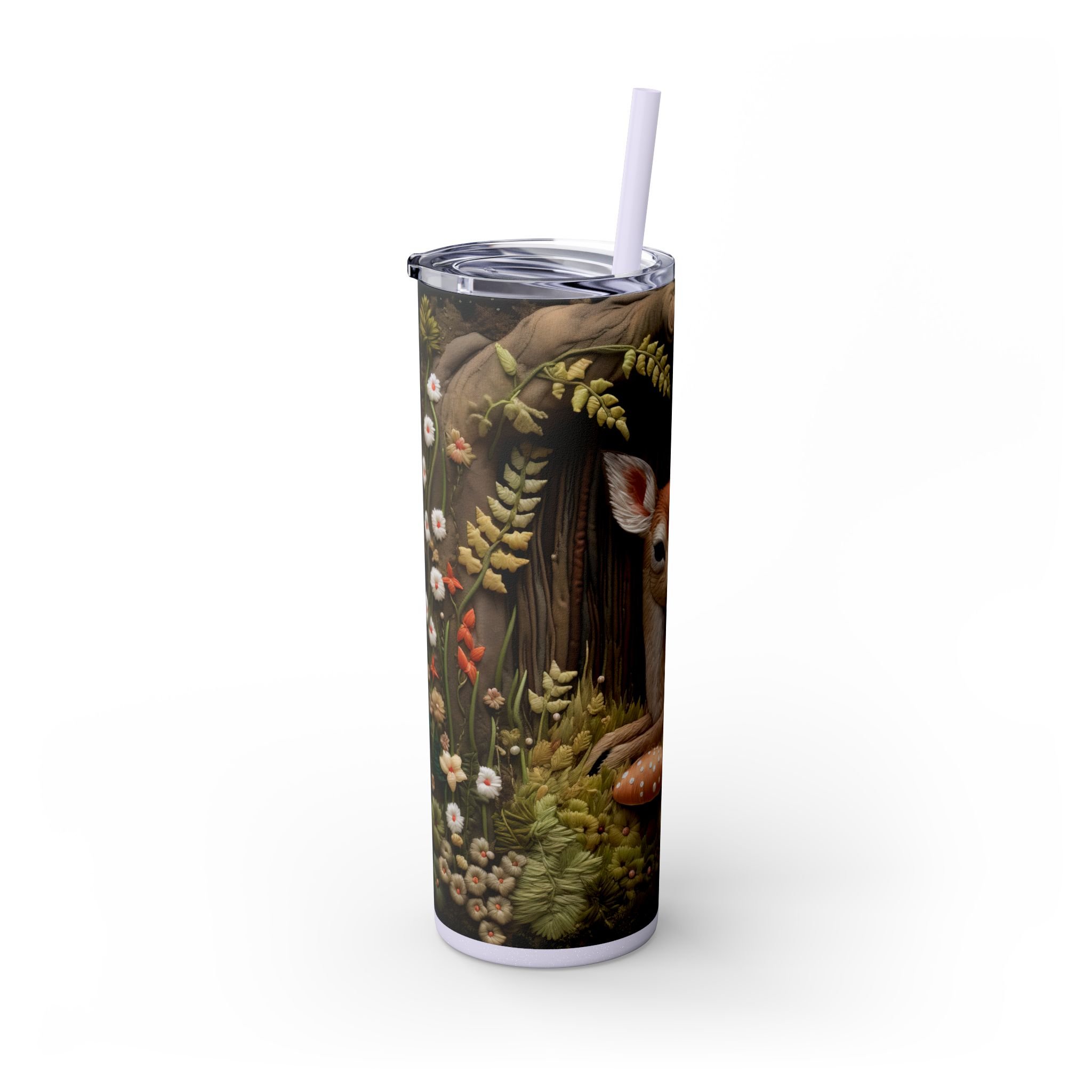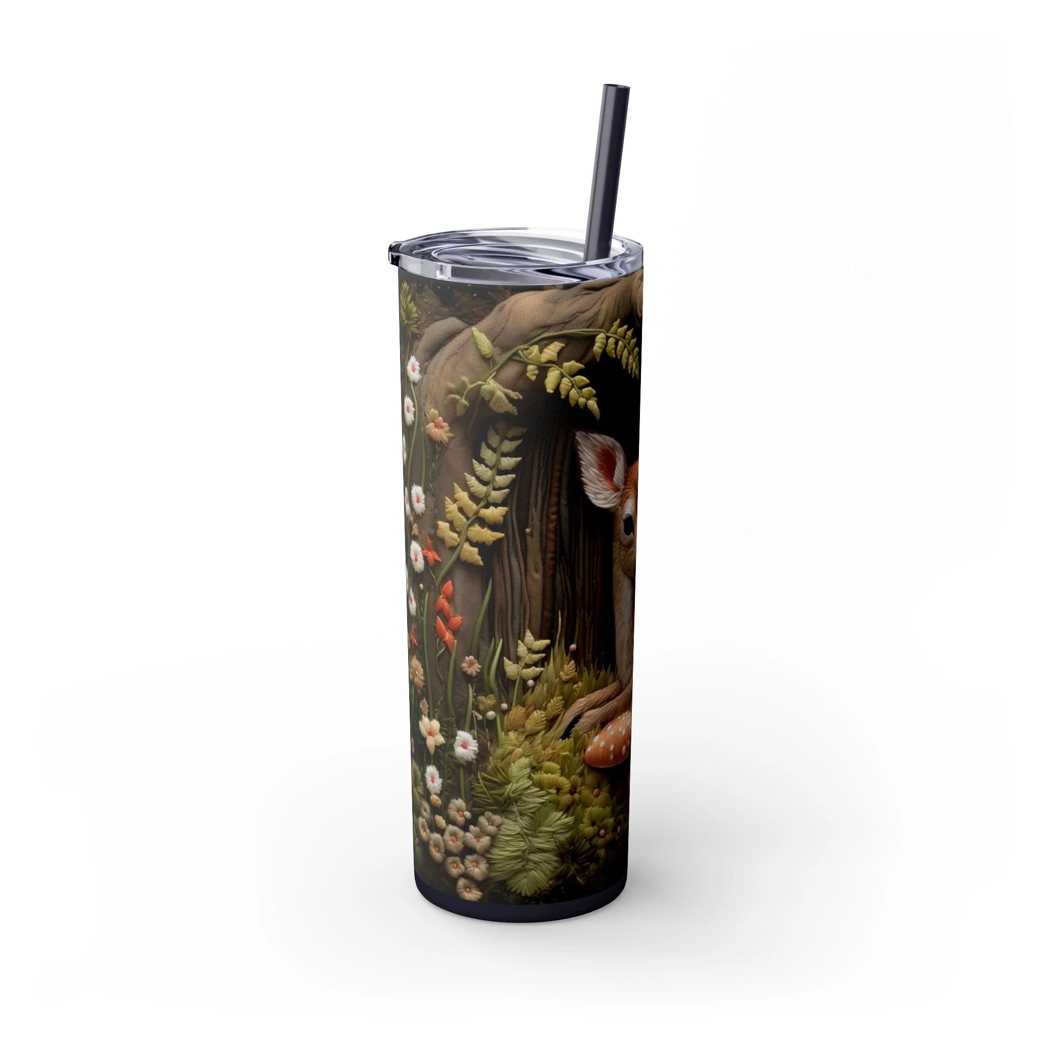 3D Embroidered Deer in the forest Tumbler with Straw