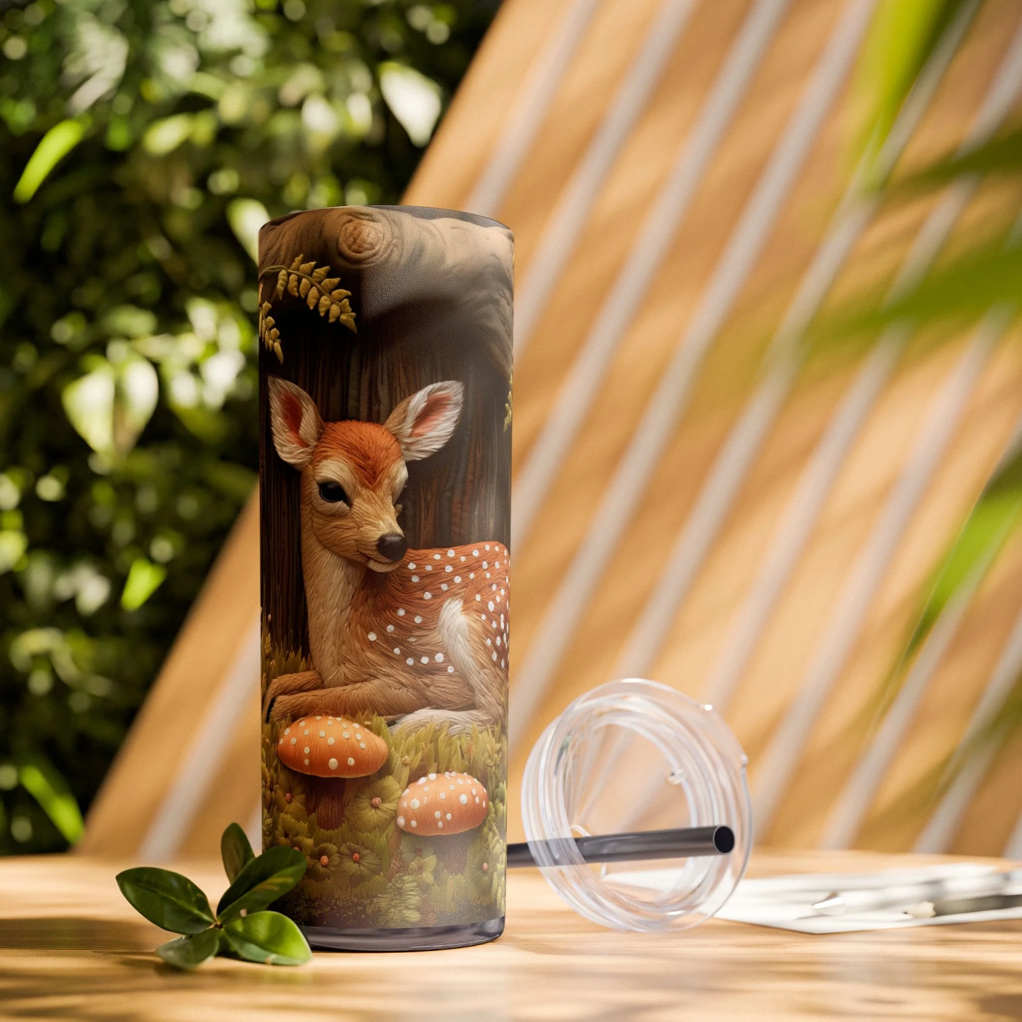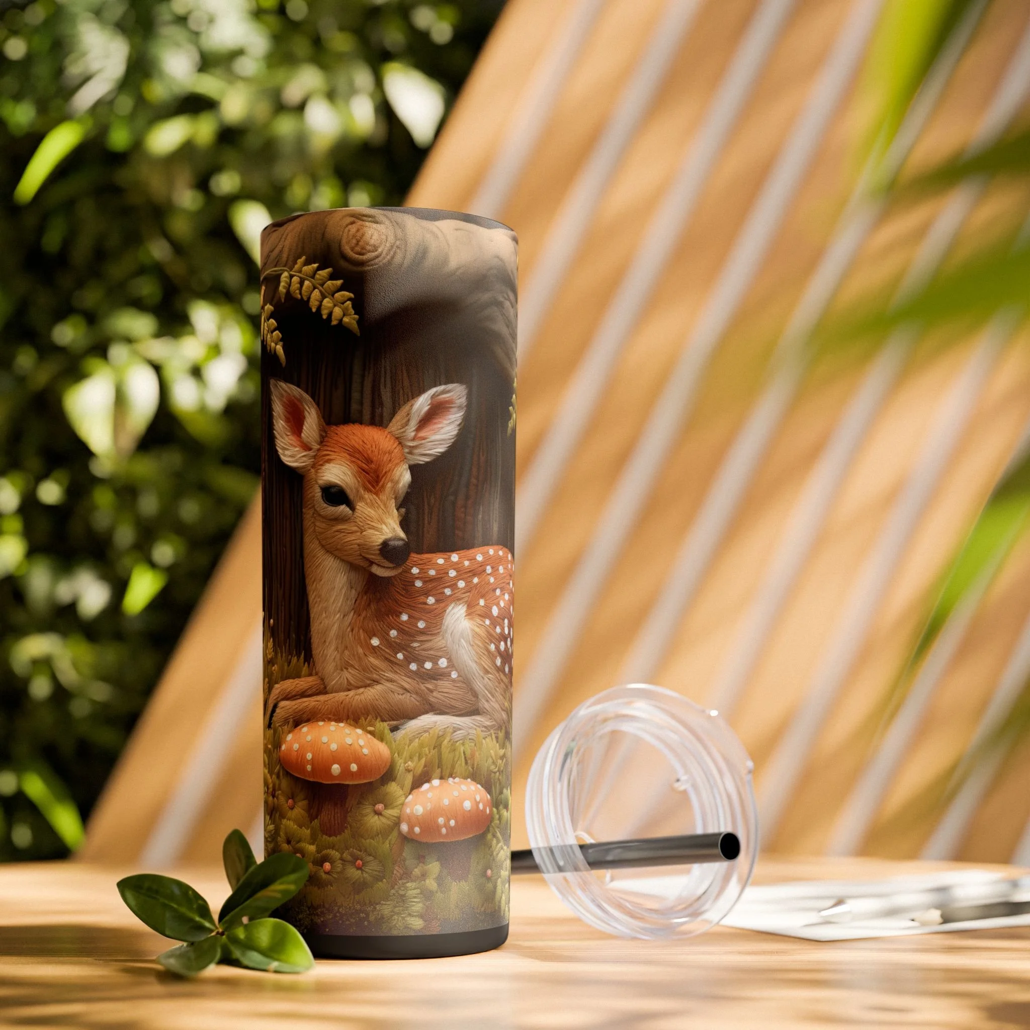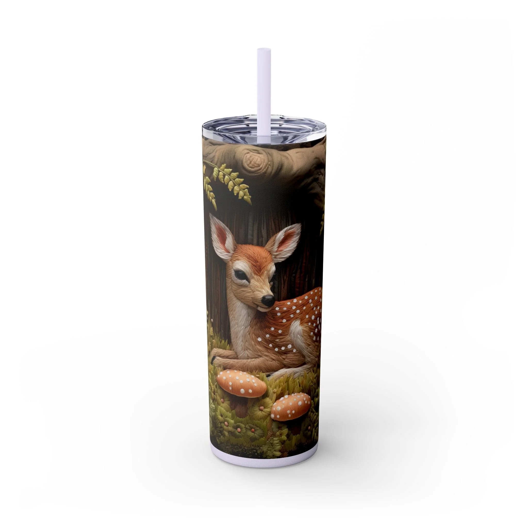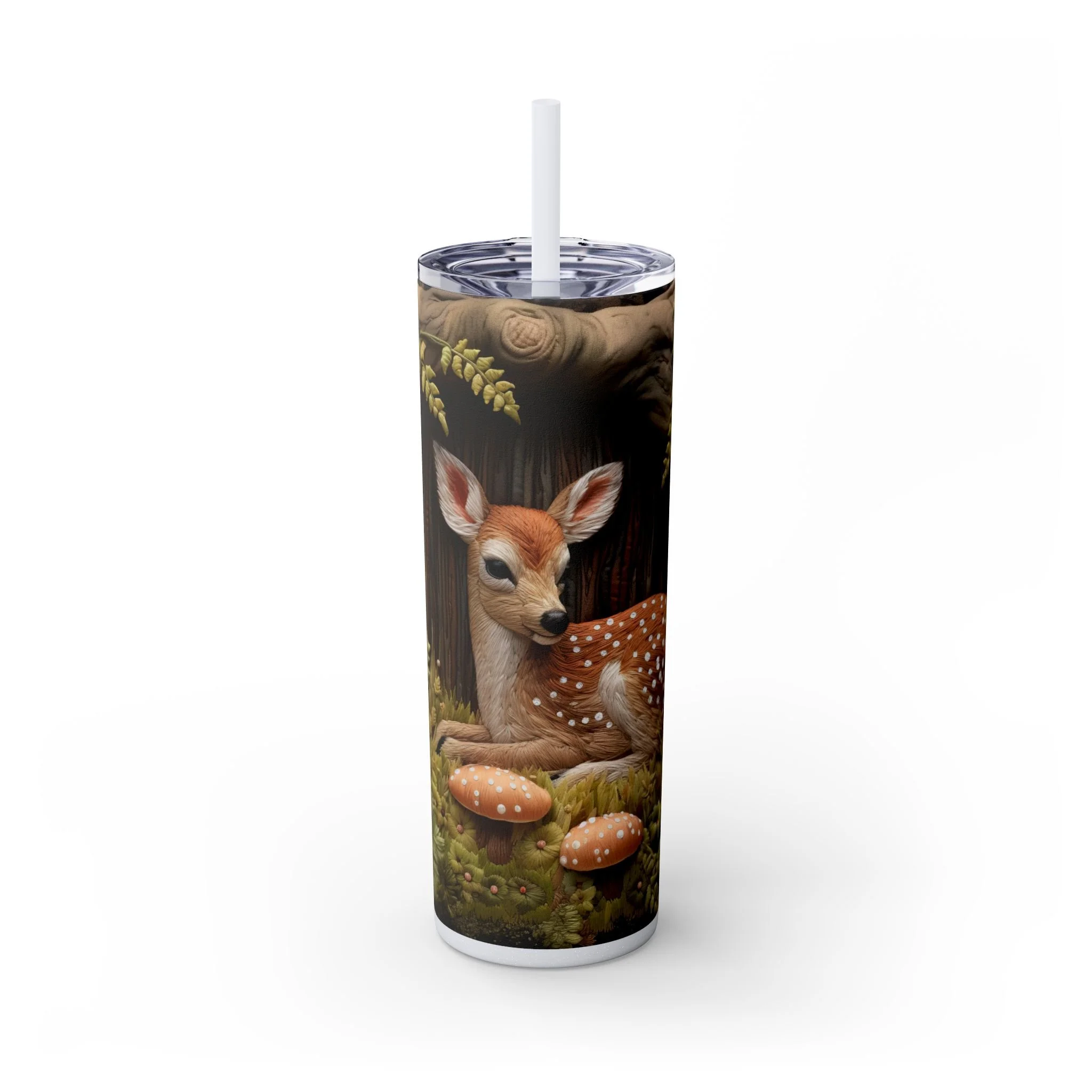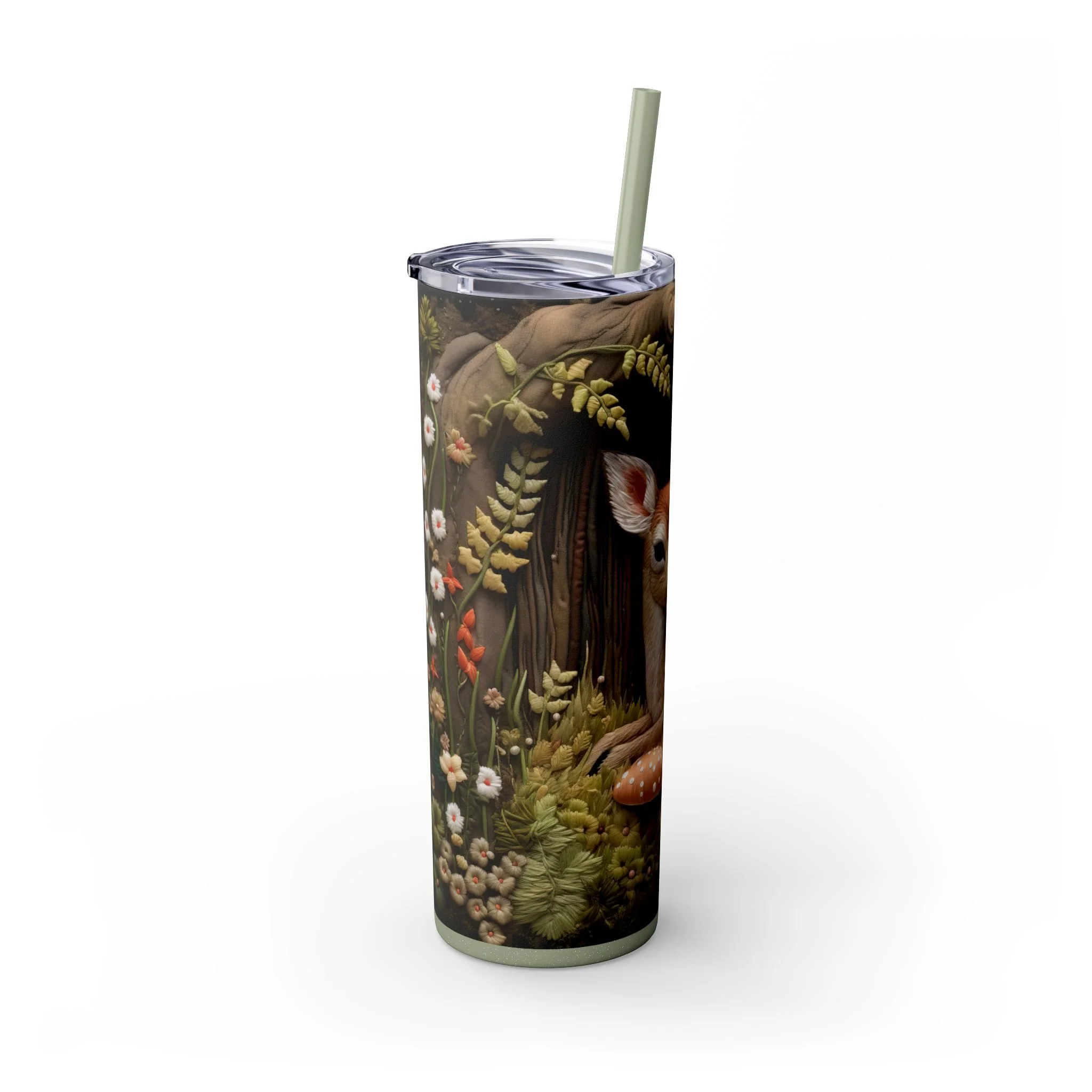 3D Embroidered Deer in the forest Tumbler with Straw
