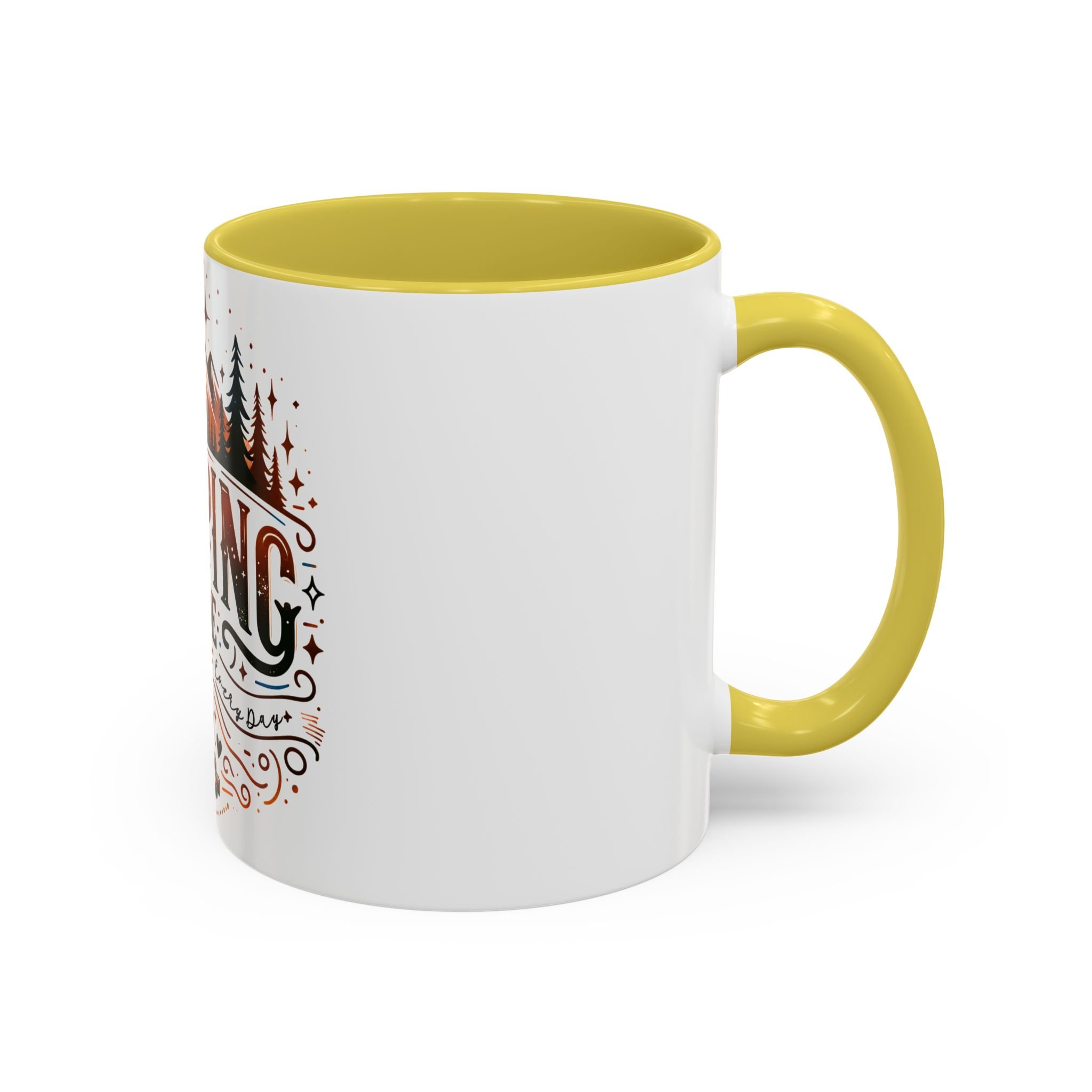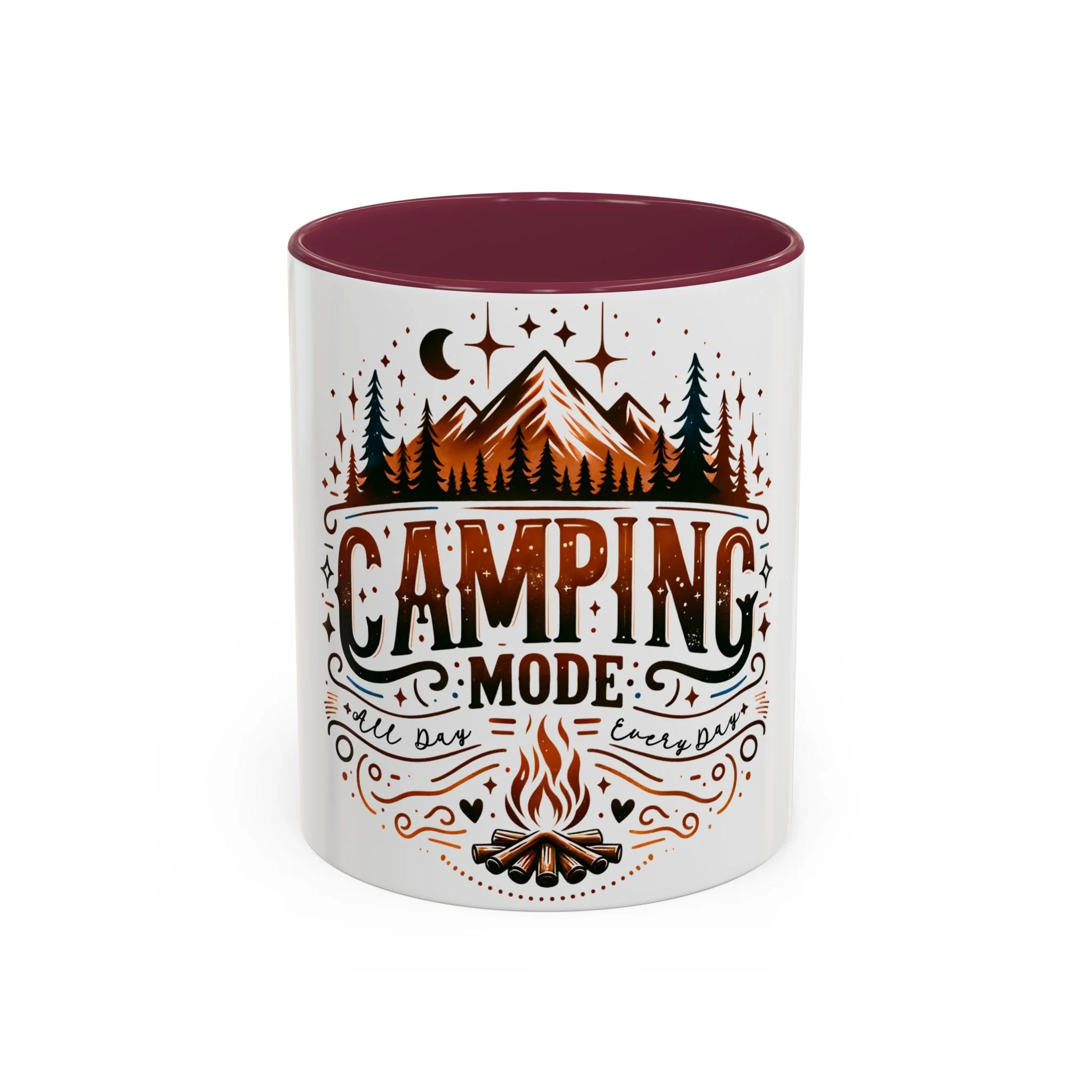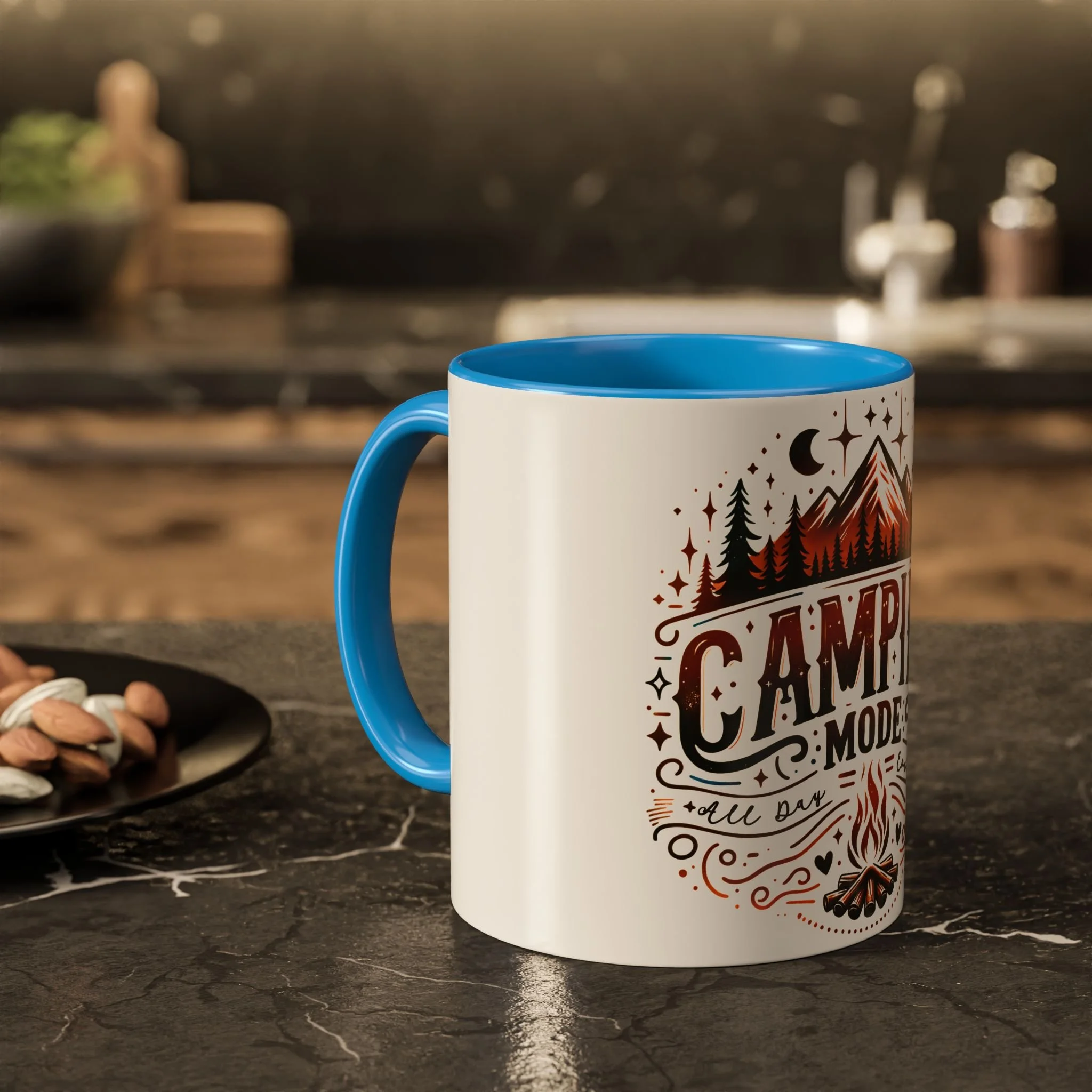 Slide this mug into your morning routine and switch on Camping Mode. Bright, glossy color wraps around every sip, bringing the smell of campfire coffee and pine-scented air to the kitchen table. Hold the easy-grip C-handle as you plan a weekend trail, flip through maps, or linger over a slow sunrise. The colored interior and handle add a playful, outdoorsy pop that fits a packed cooler or a well-loved enamel set. Sturdy ceramic and ORCA finish mean the print stays vivid through days at the campsite and countless dishwasher cycles. Whether it’s a wake-up before a dawn hike or a quiet evening by the fire pit, this mug keeps the mood — warm, energetic, and ready for the next path.