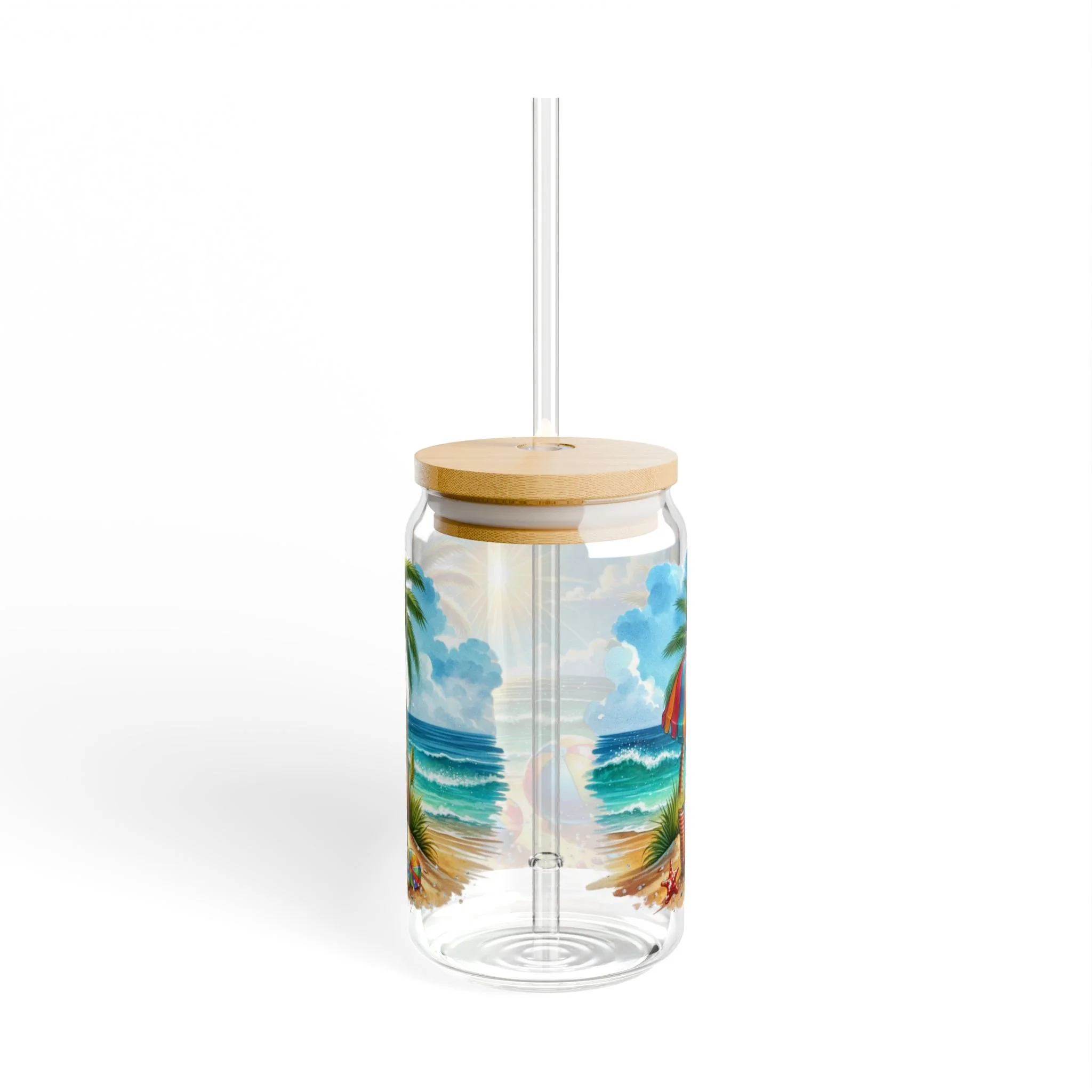 This 16oz sipper glass brings a bright, breezy energy to everyday drinks. Clear tempered glass showcases a lively summer design of teal and purple butterflies circling a hand-lettered “Hello Summer” script. Choose the smooth bamboo gasket-push lid with a durable Tritan straw for on-the-go sipping or opt for the glass alone to enjoy chilled iced tea, lemonade, or infused water at home. Lightweight yet sturdy, it feels cool in your hand and adds a playful pop to porch mornings, picnic afternoons, and backyard gatherings. Each piece is BPA-free and made in the USA from globally sourced materials — keep it vibrant by hand washing only.