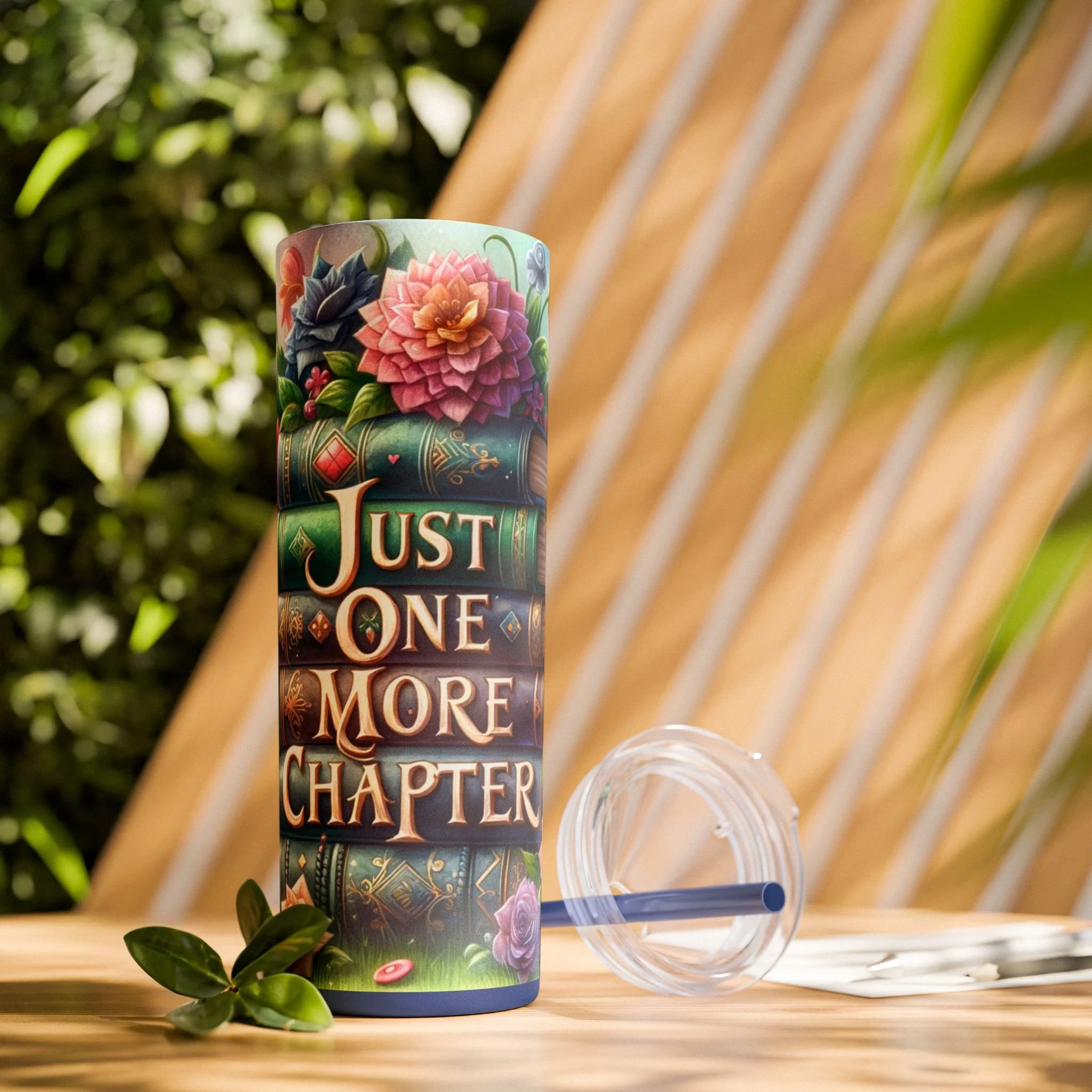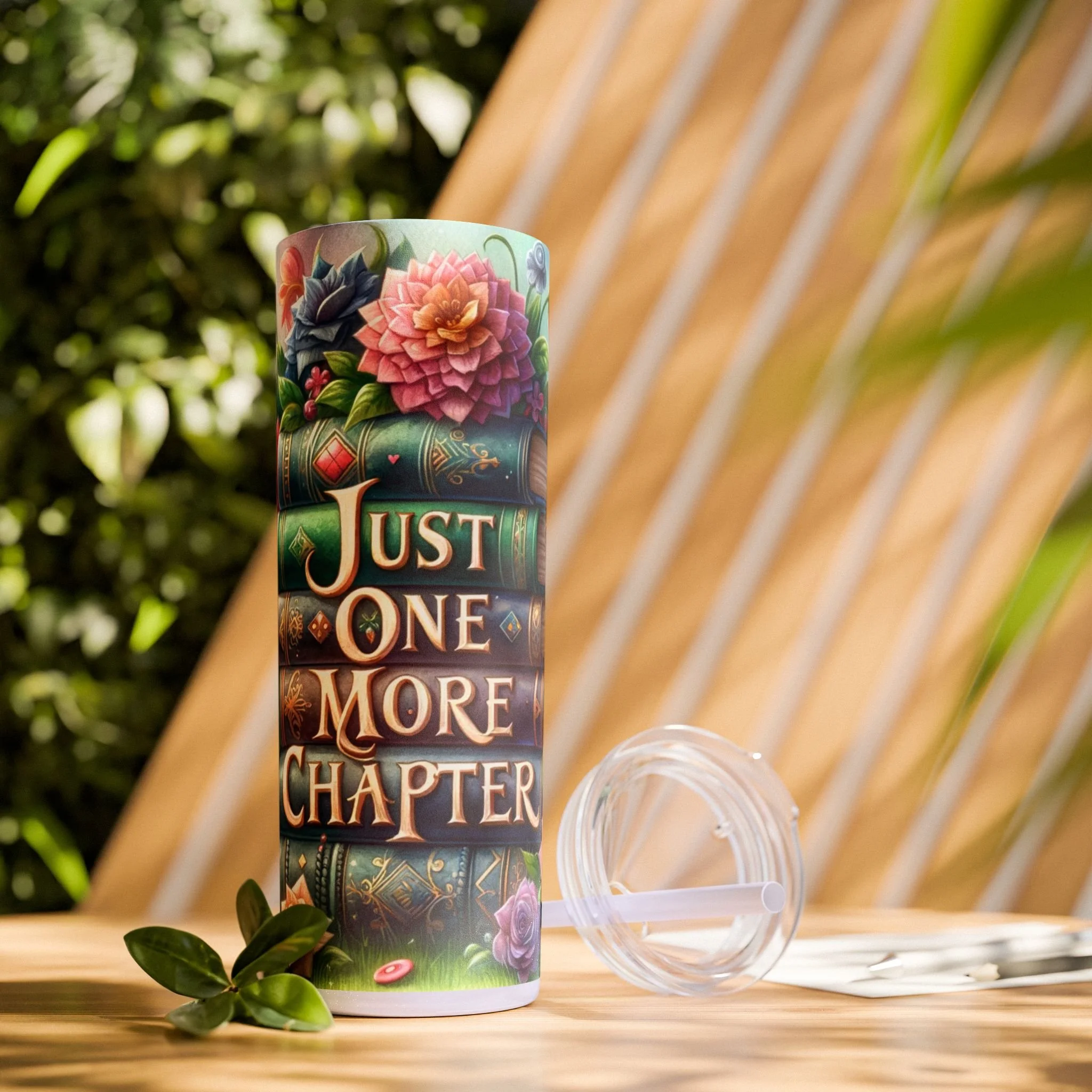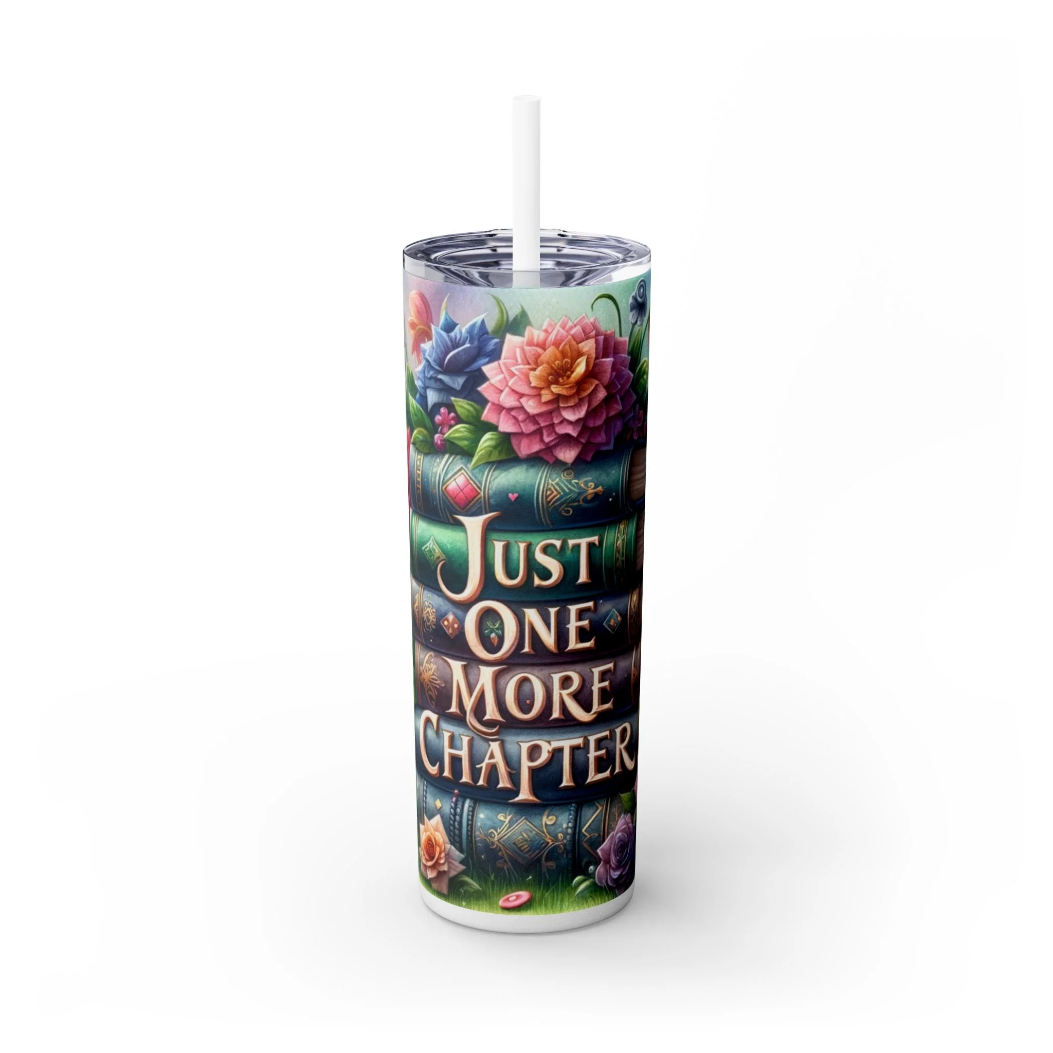 Stay hydrated while getting lost in your favorite book with this 'Just one more chapter' tumbler. Perfect for book lovers who enjoy sipping on their favorite beverages while diving into a good novel. Ideal for cozy reading nights, book club meetings, or relaxing weekends.