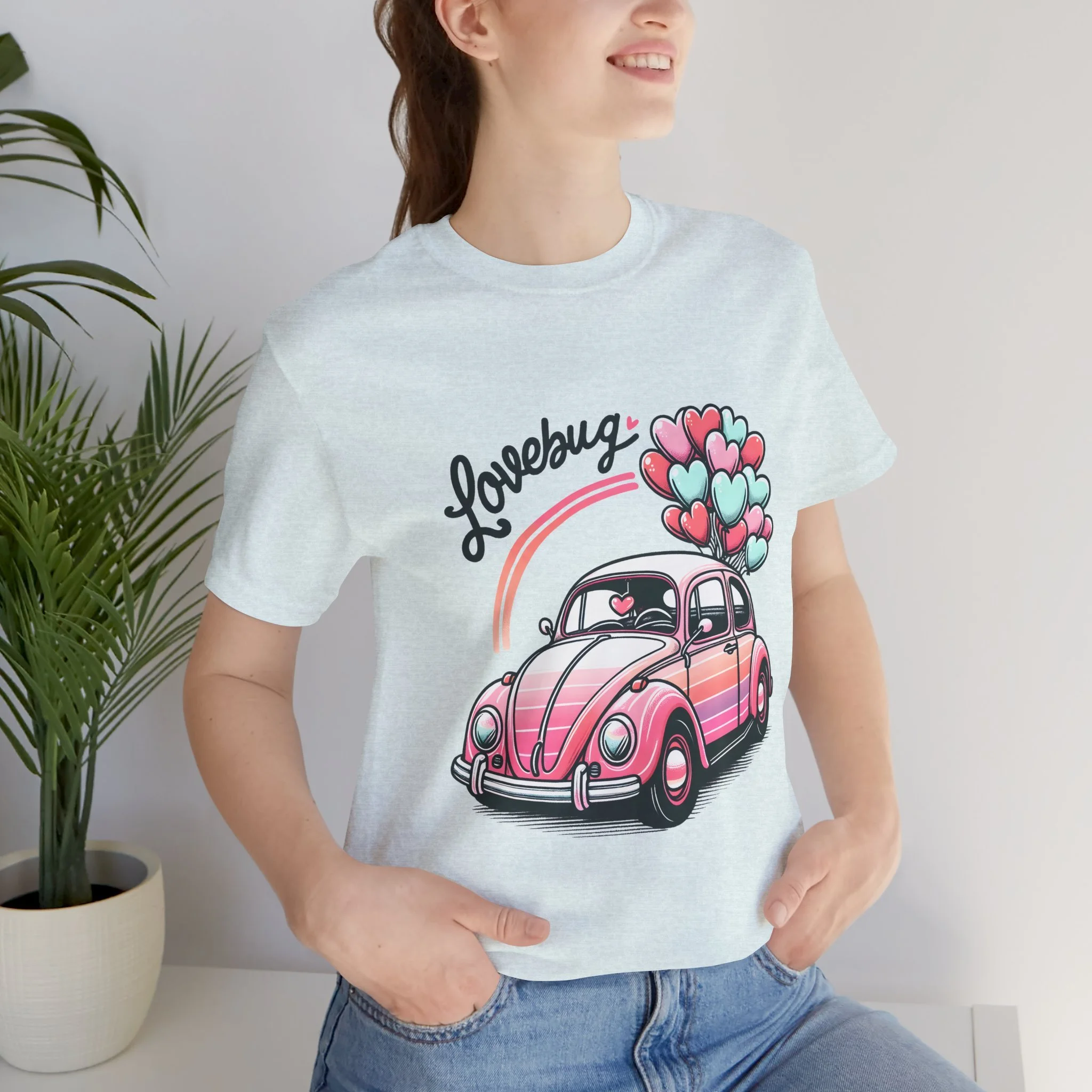 This Love Bug tee exudes a fun and playful vibe, perfect for those who want to spread positivity and love with their wardrobe. It is a versatile piece that can be easily styled for casual outings or relaxed days at home. This tee is relevant for Valentine's Day, anniversaries, or any day you want to show appreciation for someone special in your life.