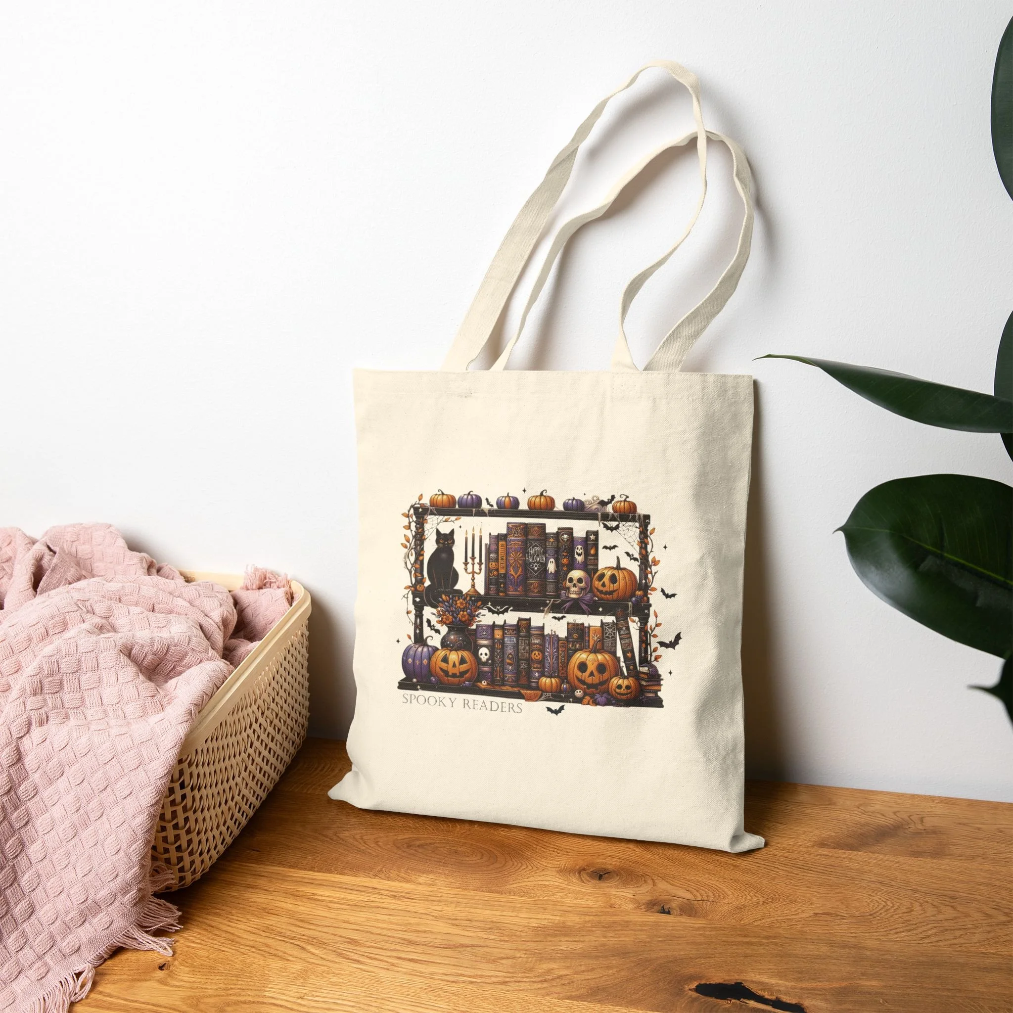 The design for the "Salem Witch Book Club" sweater captures the essence of spooky elegance and literary charm. At the center, a sleek black cat with piercing green eyes sits proudly atop a large, vibrant orange pumpkin. The cat’s tail curls gracefully around the pumpkin, while its ears are perked up, giving it an alert and mysterious demeanor. Surrounding the cat and pumpkin is an intricate pattern of swirling vines and autumn leaves, adding a touch of nature's beauty to the scene. Above and below this central image, the words "Salem Witch Book Club" are displayed in a whimsical, yet sophisticated font that evokes the mystique of old spell books and ancient libraries. The entire design is rendered in a combination of rich, contrasting colors that make the imagery pop against the background of the cozy, soft sweater fabric, making it a perfect garment for chilly autumn evenings spent with a good book.