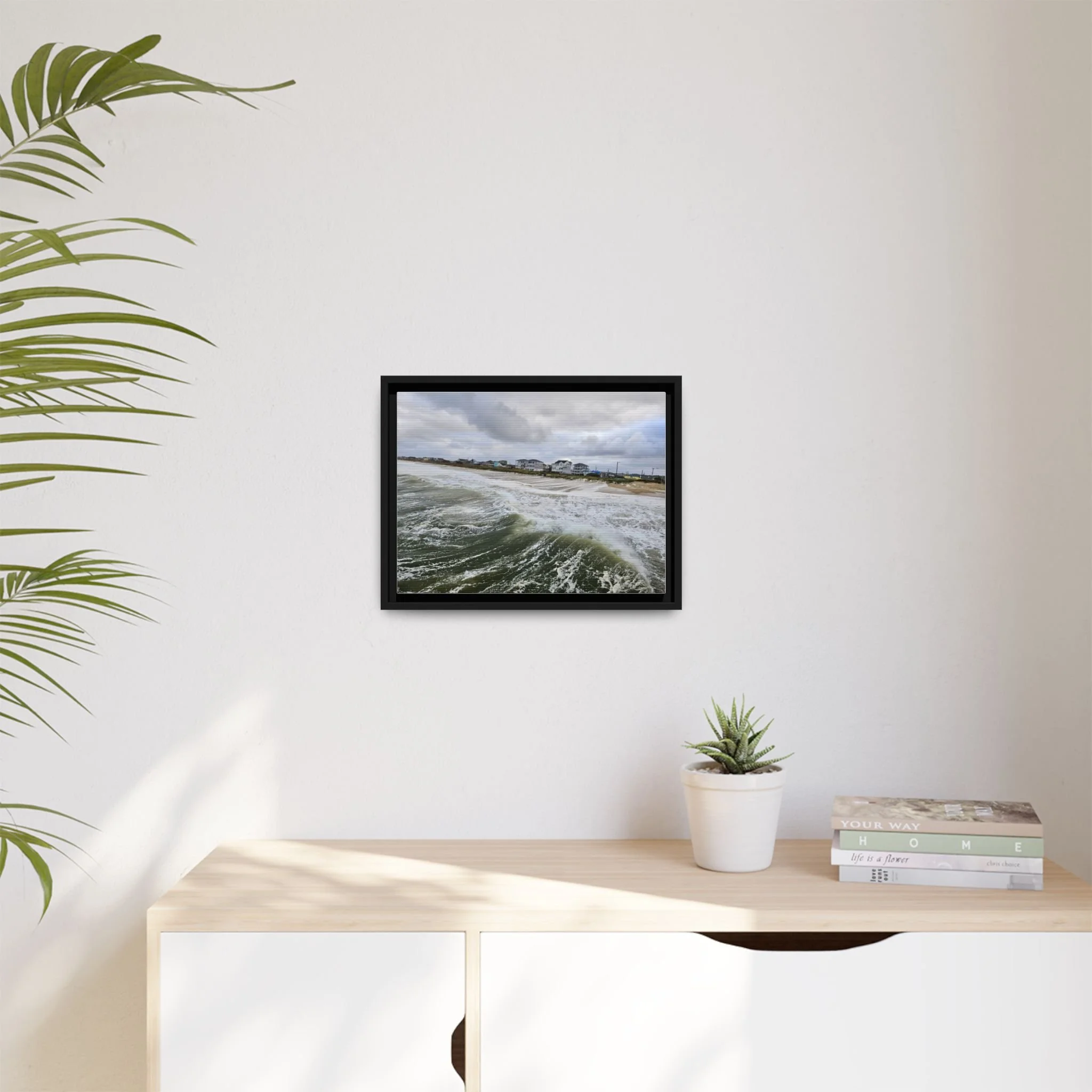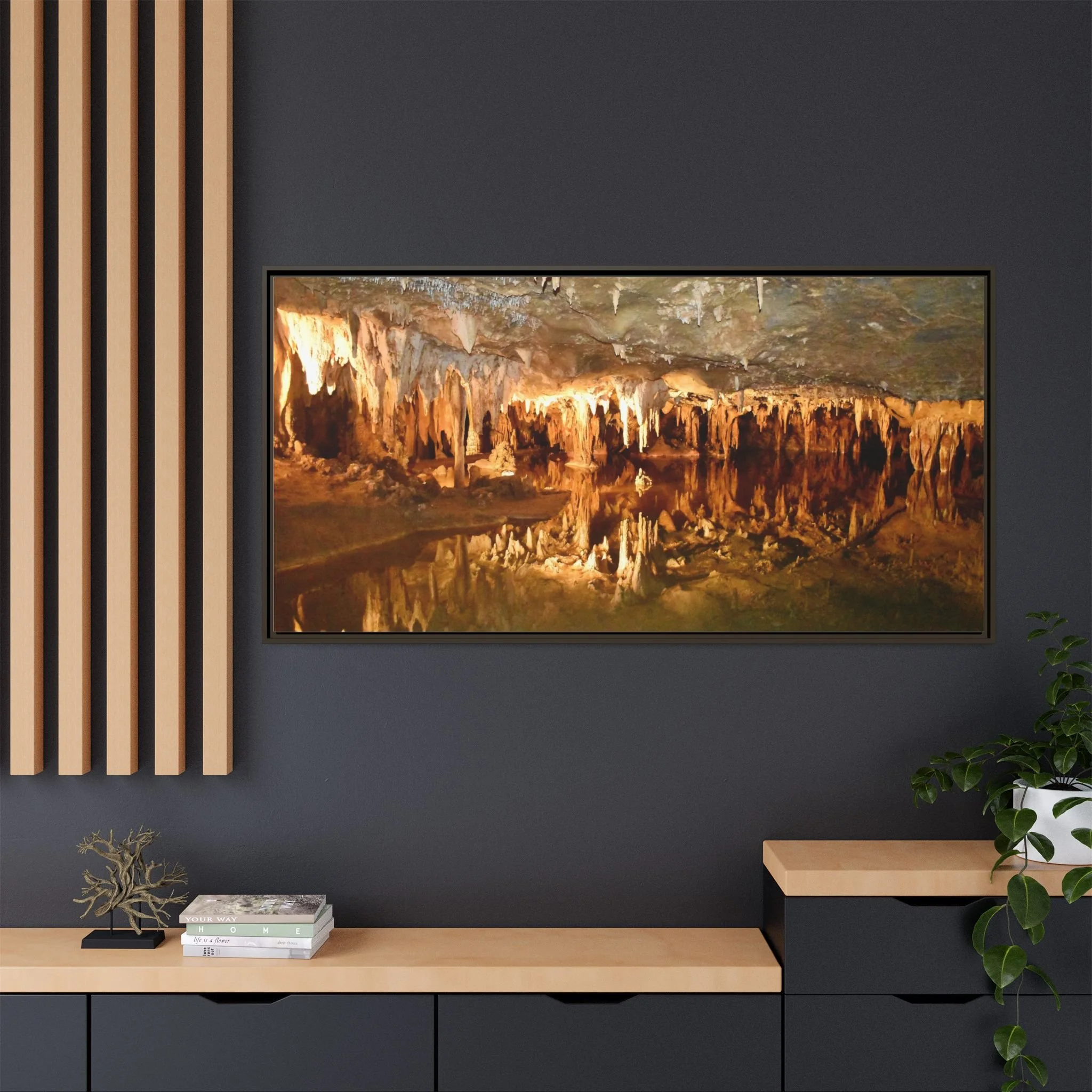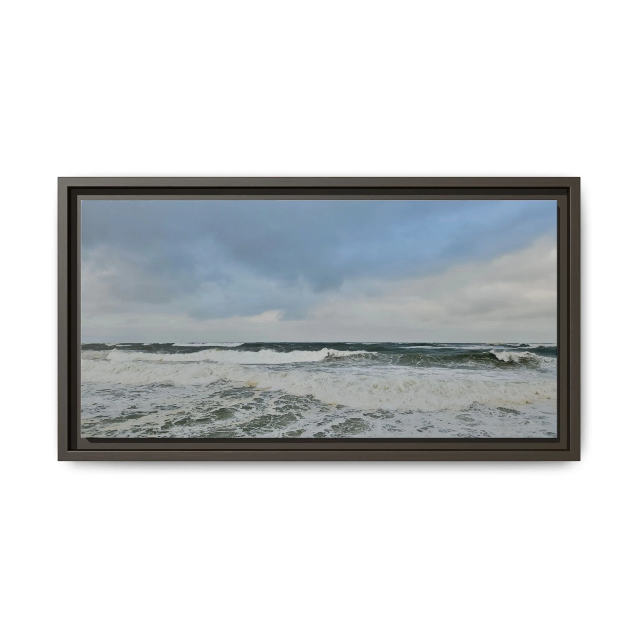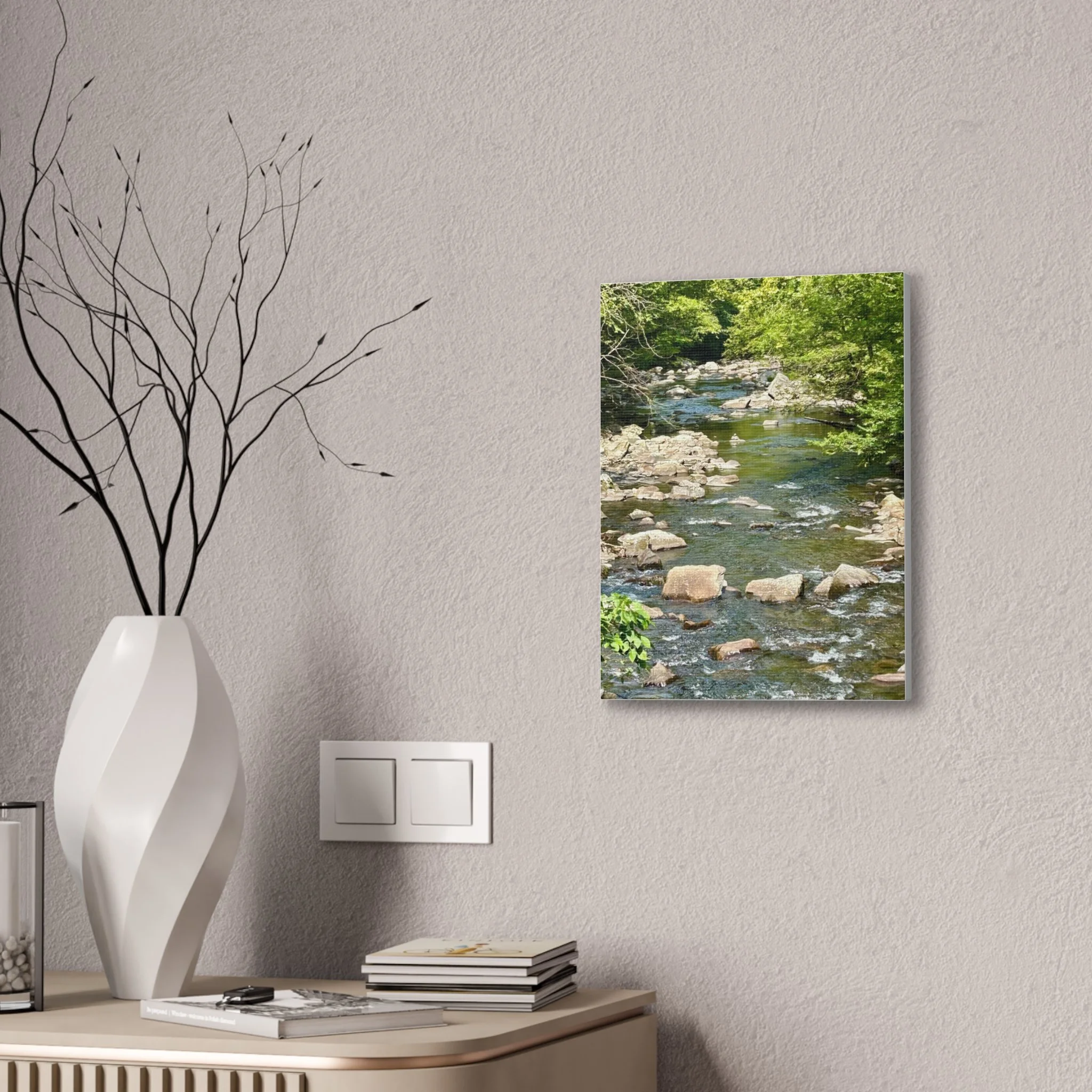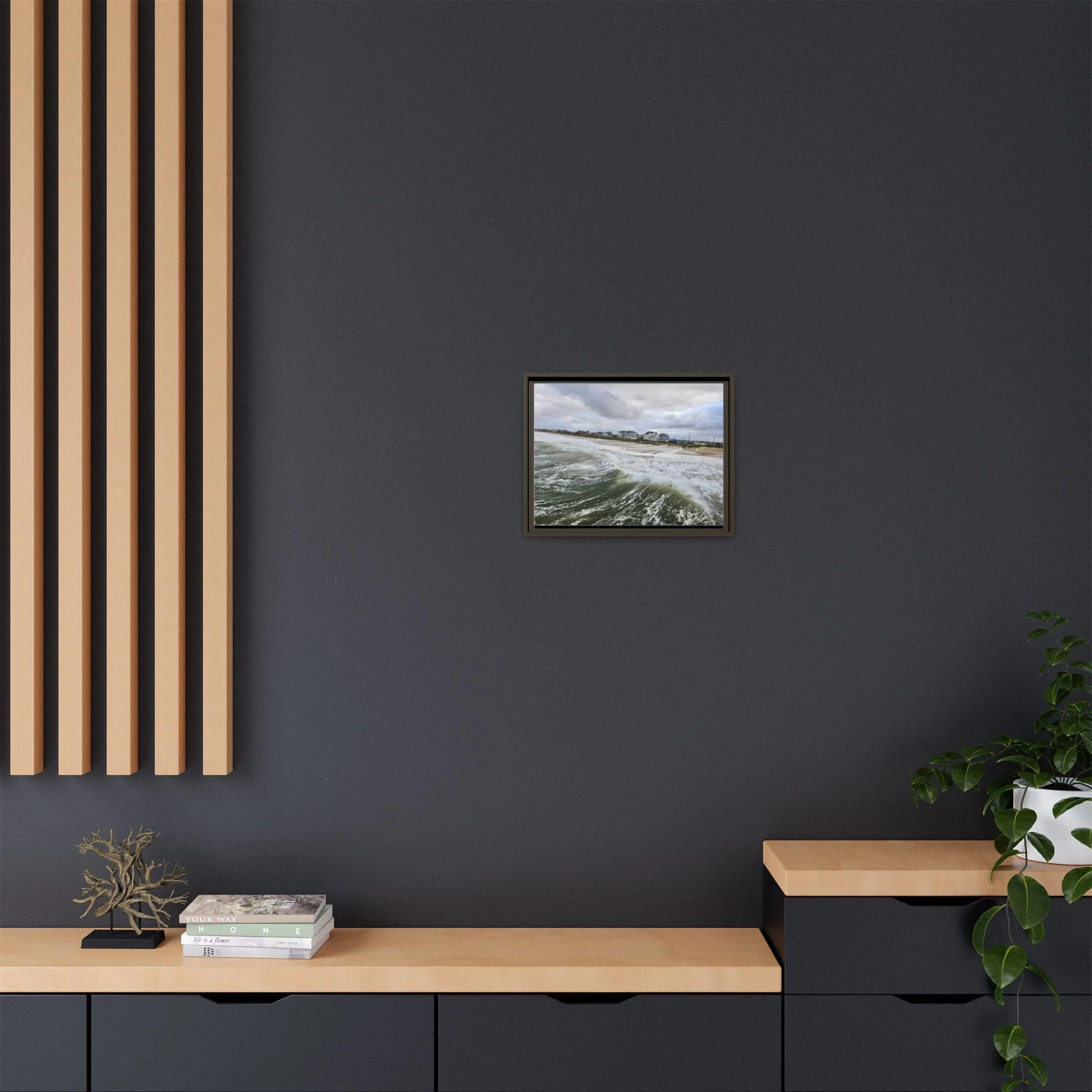 The canvas print captures a serene moment at the transitional hour of dusk, where the waning light casts a soft, ethereal glow over an unexpected scene. Two deers, elegant and gentle, stand gracefully in an otherwise unremarkable parking lot, drinking from a shallow puddle formed by a recent rain. Their sleek, tawny coats contrast subtly with the muted grays and blues of the surrounding concrete and asphalt, while the faint silhouette of distant trees edges the horizon. The sky above is a tapestry of deepening indigo and lingering streaks of fiery orange, embodying the tranquil shift from day to night. This harmonious interplay of nature and urban environment evokes a sense of peace and wonder, reminding viewers of the beauty that can be found in the most unexpected places.