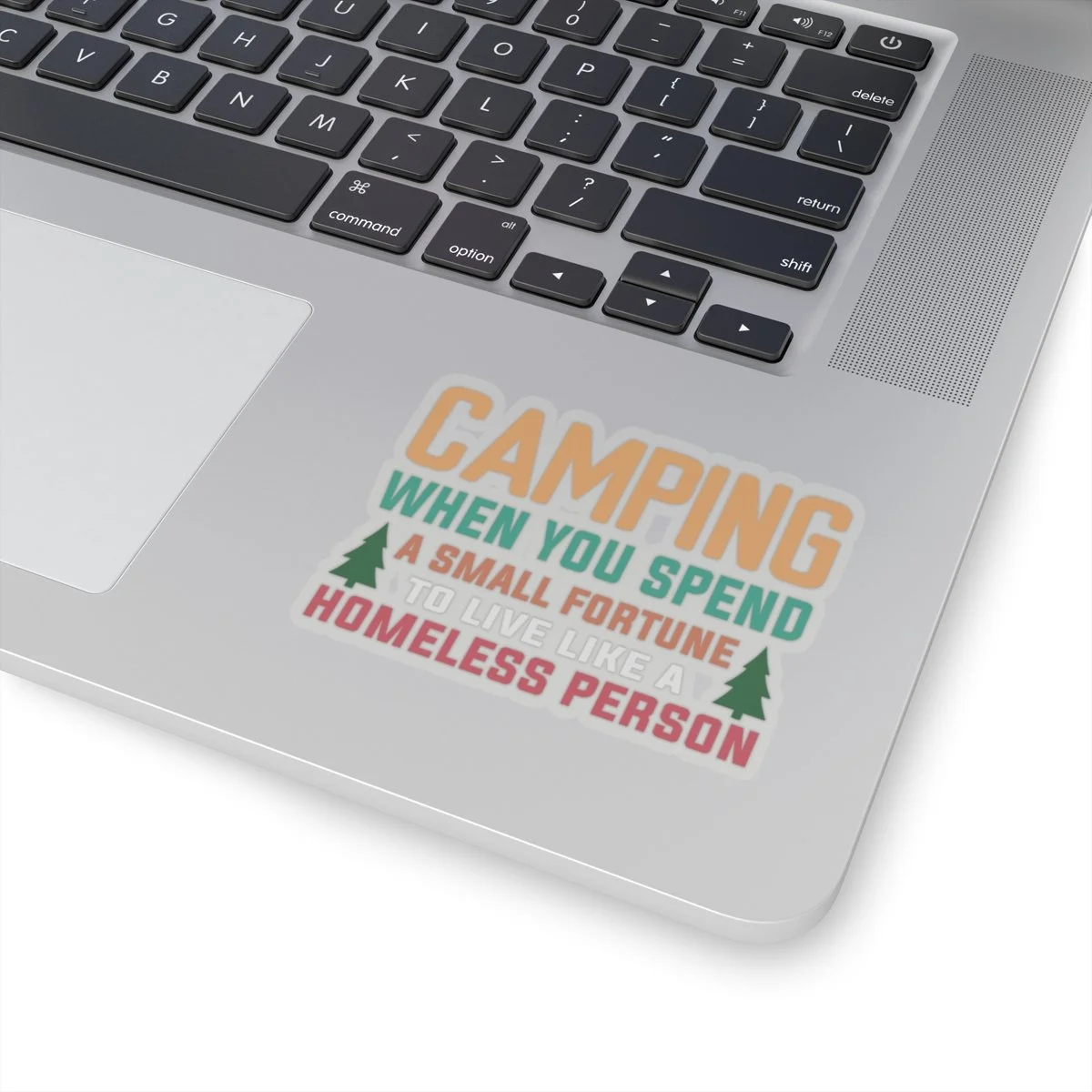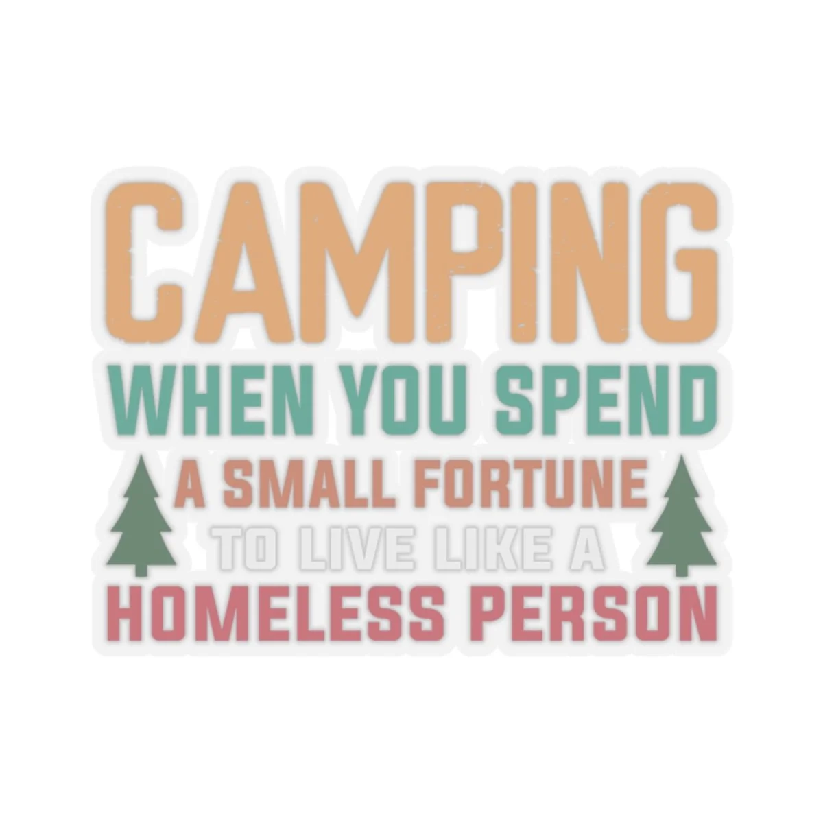 Camping, When you spend a small fortune to live like a homeless person (funny sticker)